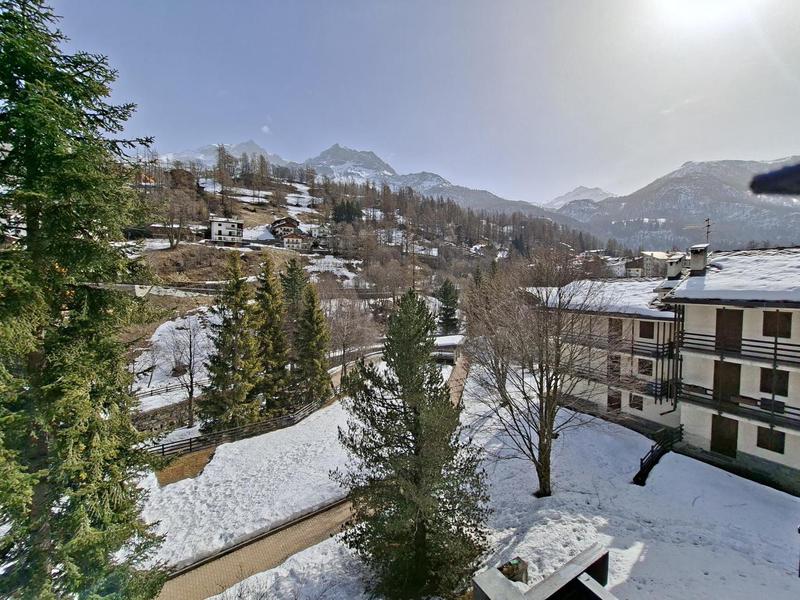 Nella Frazione di Crepin, in piccolo condominio immerso nel verde, poco distante dal centro del paese e dalla partenza degli impianti di risalita, appartamento composto da ingresso su soggiorno con angolo cottura, camera,bagno e balcone con vista.Arredato.