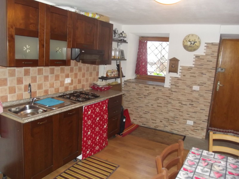 Nel borgo di Crepin, in casa storica, appartamento con ingresso indipendente composto da soggiorno con angolo cottura, disimpegno, camera matrimoniale, bagno, cantina e piccola corte di proprietà. Arredato.