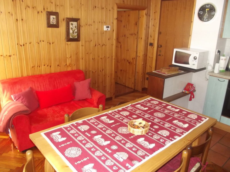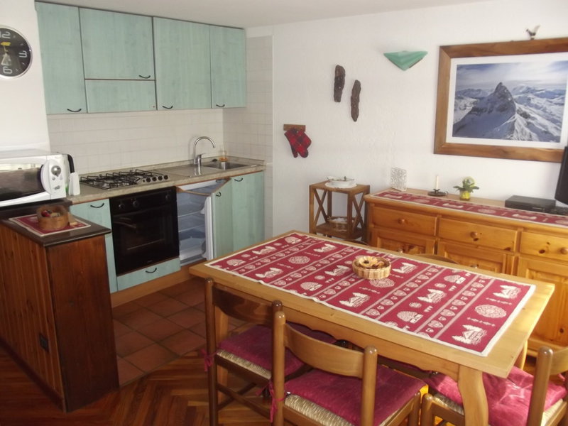 A pochi chilometri dal centro del paese, nelle vicinanze del lago di Maen, appartamento all'ultimo piano composto da ingresso, soggiorno con angolo cottura, camera matrimoniale e bagno. Giardino condominiale. Adiacente al parcheggio comunale. Arredato e in ottimo stato.